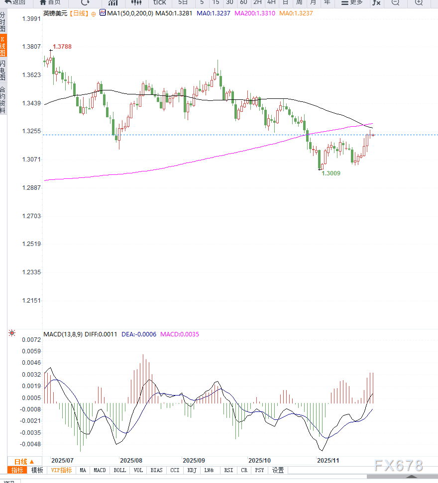 汇通财经APP讯——英镑兑美元(GBP/USD)在周五亚洲时段延续强势,以1.3240附近运行,实现连续第七个交易日上涨。推动这一走势的核心力量,是市场对美联储 12 月降息的预期迅速升温,使得美元整体承压。