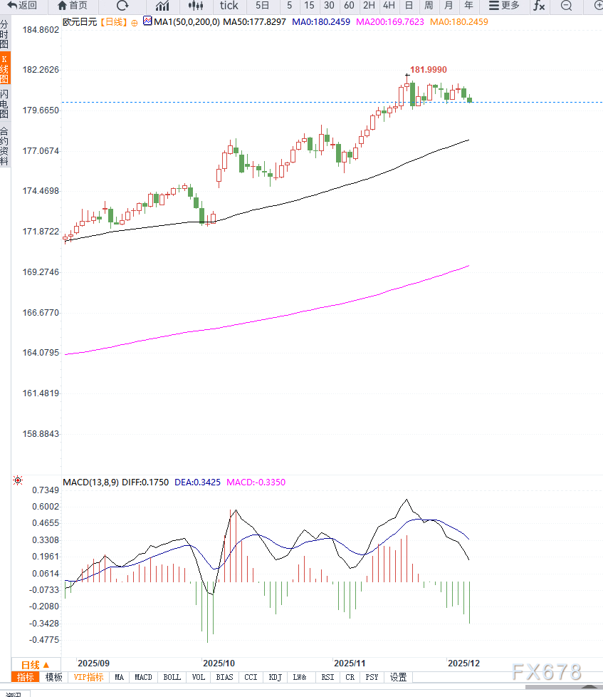 汇通财经APP讯——EUR/JPY在欧洲早盘交投于180.20附近,略显承压。日元因市场预期日本央行将在12月会议上加息而走强,抑制欧元兑日元进一步上行。